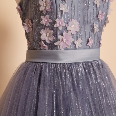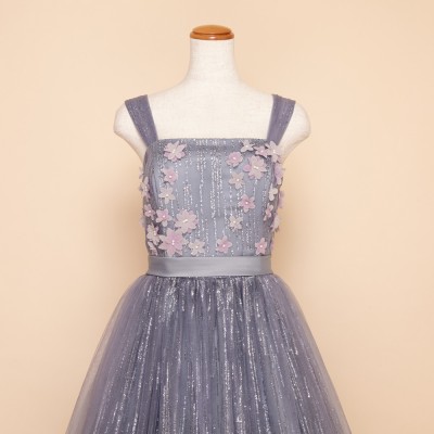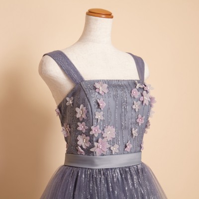 【OUTLET】スモーキーグレー立体フラワーグリッタードレス