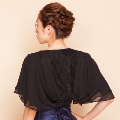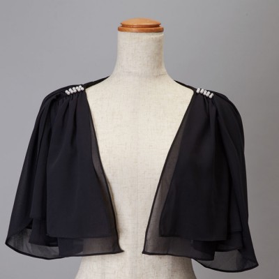 肩パールレースシフォンブラックボレロ