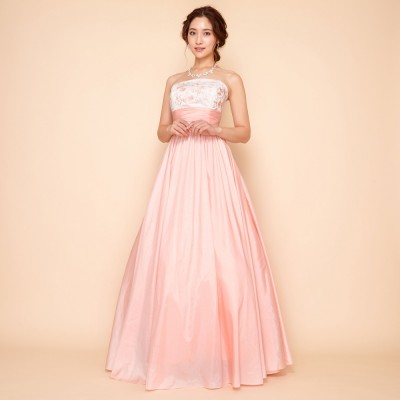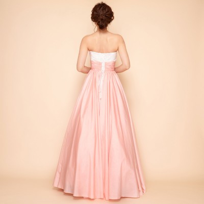 ベビーピンク胸元刺繍バイカラーAラインドレス