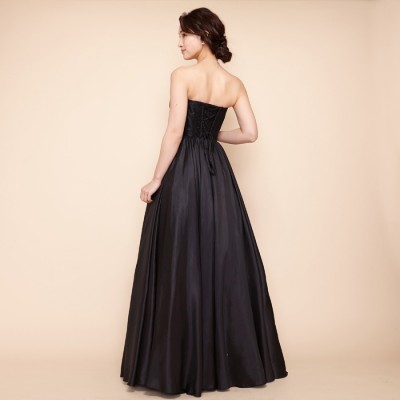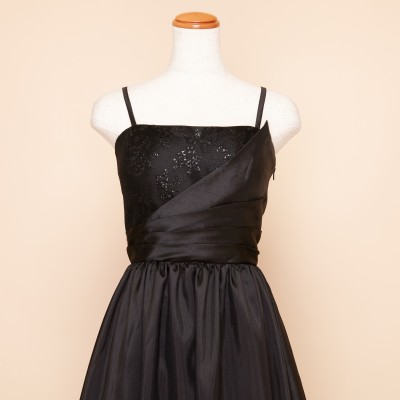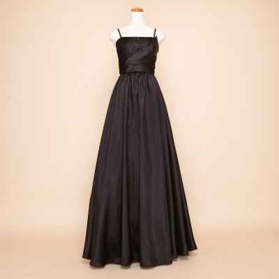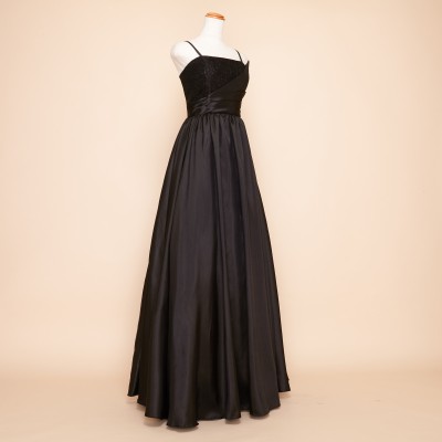 ブラックアシンメトリー上身頃グリッターロングドレス