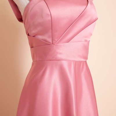【OUTLET】リッチサテンAラインアンティークピンクドレス