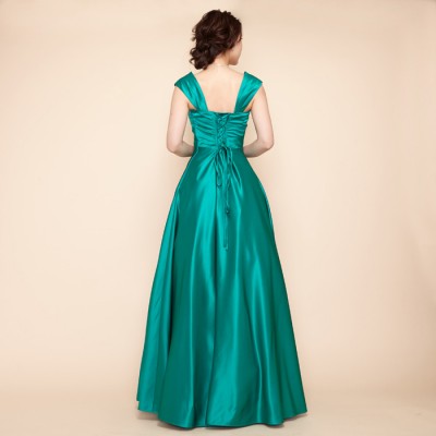 しっとりとした厚手サテンを使用したシンプルデザインのステージドレス。サテン特有のリッチな光沢はとても高級感があります。幅広の肩紐付きなので初めてドレスを着る方も安心してご着用いただく事ができ、また、この肩紐は着脱タイプなのでガラッと雰囲気を変えたベアトップドレスへとイメージチェンジも可能です。
