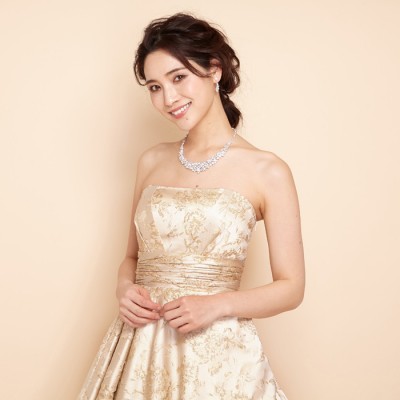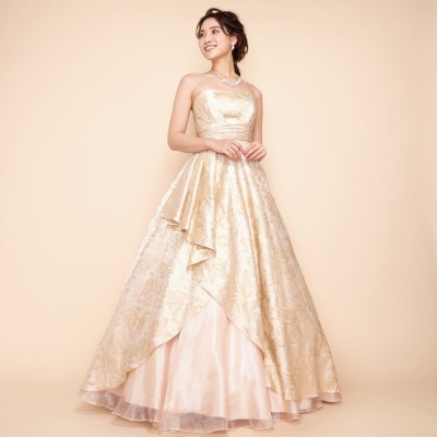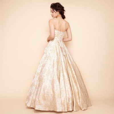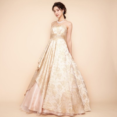 シャンパンゴールドフラワージャガードドレス