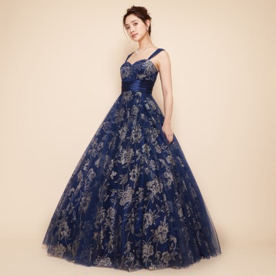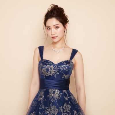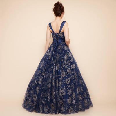定番ネイビーカラーは、最もゴールドが映えるお色味。濃い色味でも華やかなドレスをお探しの方へ。