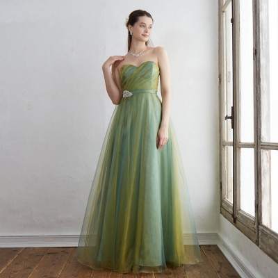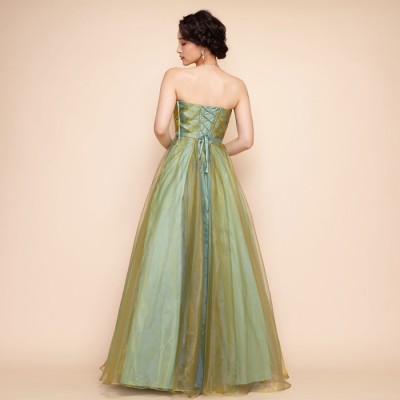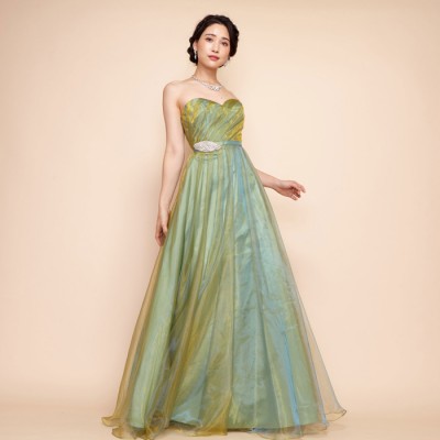 オーロラオーガンジーオリーブグリーンフレアドレス