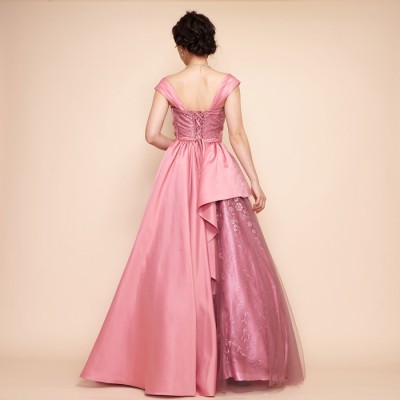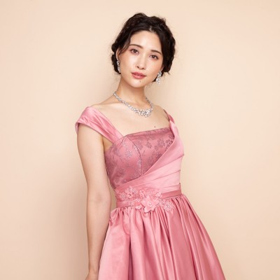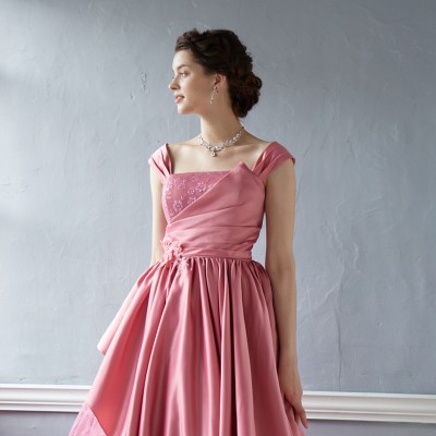 スモーキーピンクサテンレイヤースカートグリッタードレス