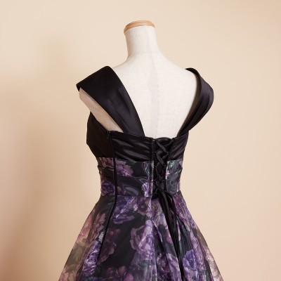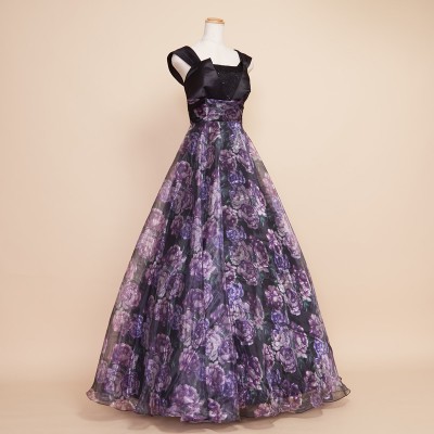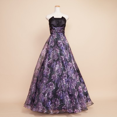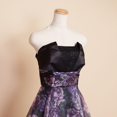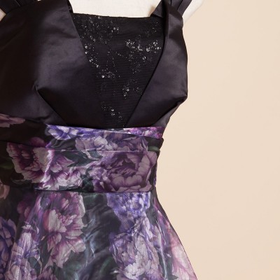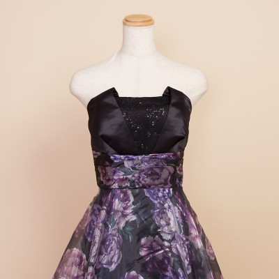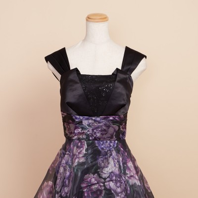 艶めく光沢のオーガンジーに水彩のような淡いフラワープリントがエレガントなふんわりAラインドレス。特徴的な胸元デザインが目を惹き、着脱可能な肩紐付で雰囲気を変えての着回し力も抜群。可愛らしいイメージの花柄も、シックな色合いなら大人っぽく着こなせます。クールで強気なブラック×パープルカラー。