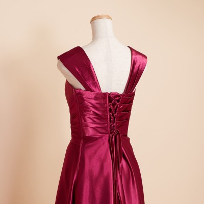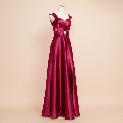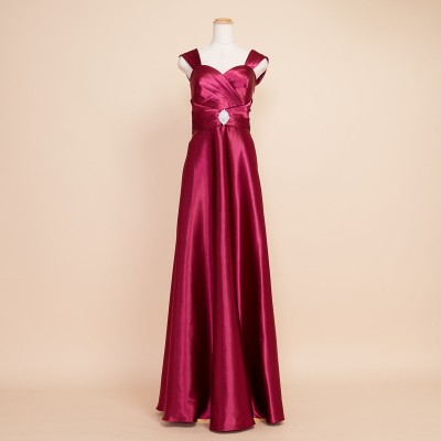 クロスデザインシャイニーワインレッドドレス