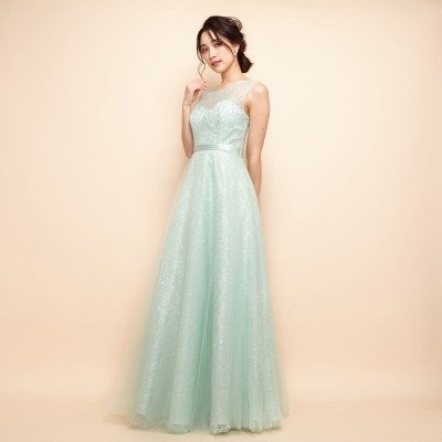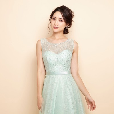 レーススパンコールミントチュールフレアドレス