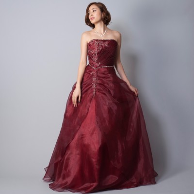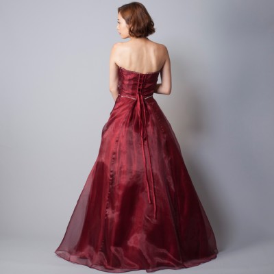【OUTLET】ワイン刺繍ビジューオーガンジーレイヤーロングドレス