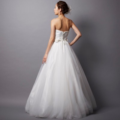 ※チュール・オーガンジースカートのドレスは少し長め(約2~3cm程度、一番外側の生地が床に付く長さ)の仕上げとなります。