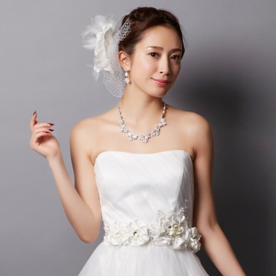 ホワイトフラワービジューモチーフチュールプリンセスドレス