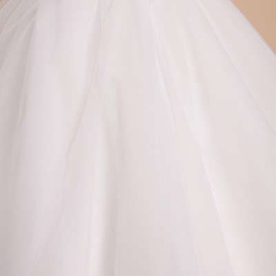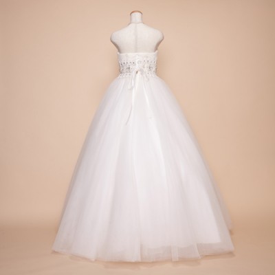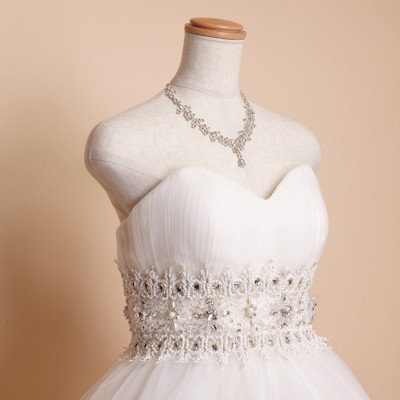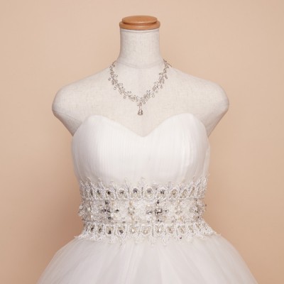 ボリュームたっぷりのチュールスカートにウエストのビーズ装飾が目を惹くウエディングドレスです。
