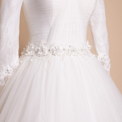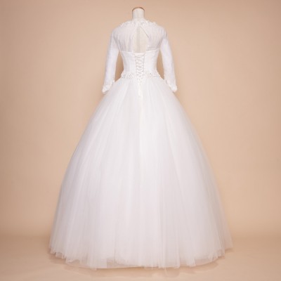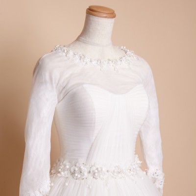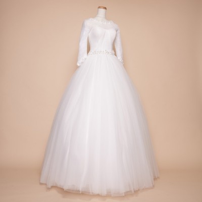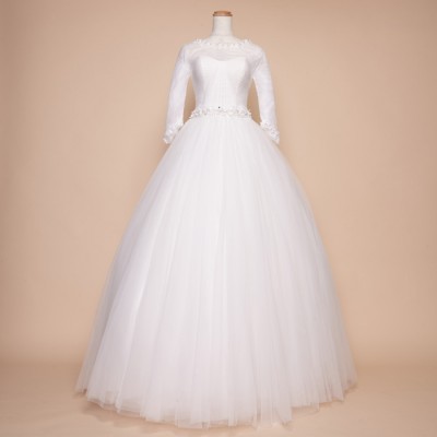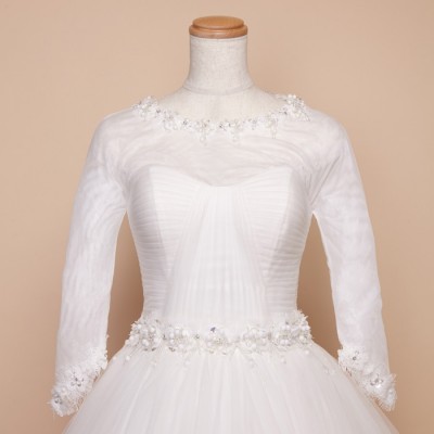 袖ありのシックなボリュームプリンセスウエディングドレスです。