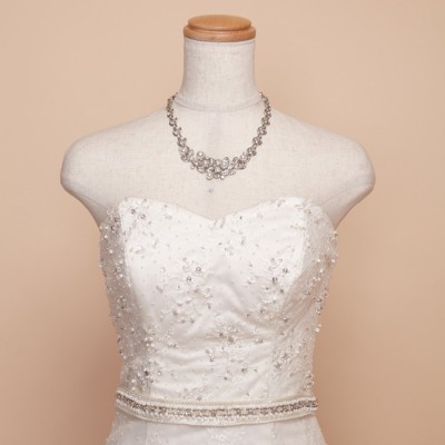 店舗にてこちらの商品をご試着いただけますが、ウエディングドレスのご試着時は試着料を頂戴いたしますので予めご了承ください。