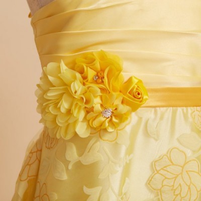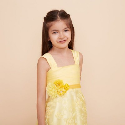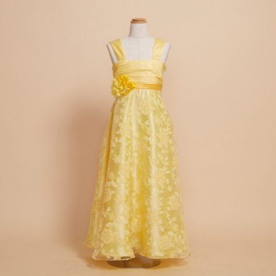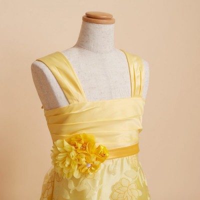 少し大人なデザインのキュートイエローキッズドレス。明るく元気の出る鮮やかカラーが可愛らしさをより引き立てます。パニエを入れてふんわり着るのもおすすめ。発表会や記念写真撮影用に。