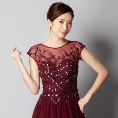 上半身のビジュー刺繍が華やかな肩カバーロングドレスです