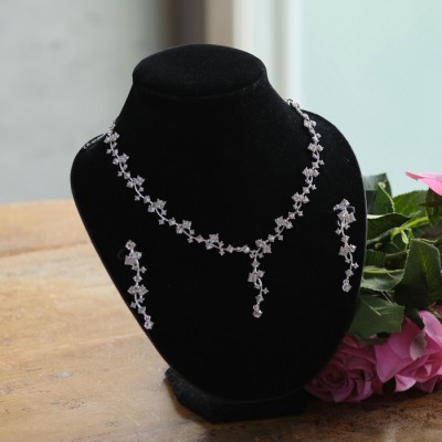 エレガントで華奢なネックレスイヤリングセット。胸元の開いたすっきりとしたスタイルのドレスに合わせやすいデザインです。