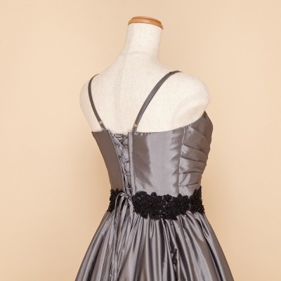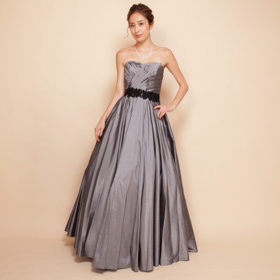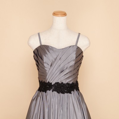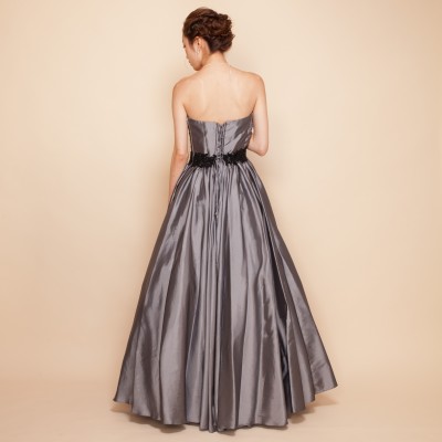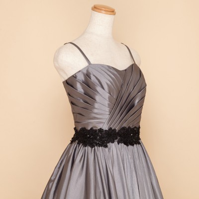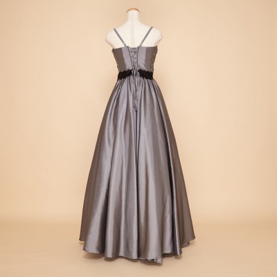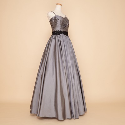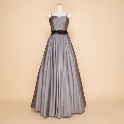 定番大人気の演奏会ドレス。気品あるクラシカルなデザインのAラインドレスです。ギャザーをふんだんにあしらったスカートは、ボリュームパニエを使えばさらに豪華にみせる事も可能。ドレスを初めて着る方にも扱いやすい、丈夫なタフタ生地を使用しています。独特な光沢のあるタフタ生地のシルバードレスは上品にシックに着こなせます。