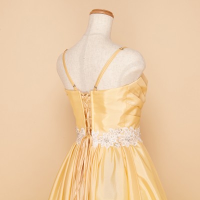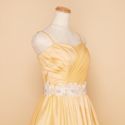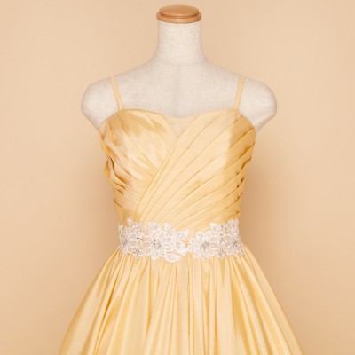 イエローAラインウエストレースタフタステージドレス