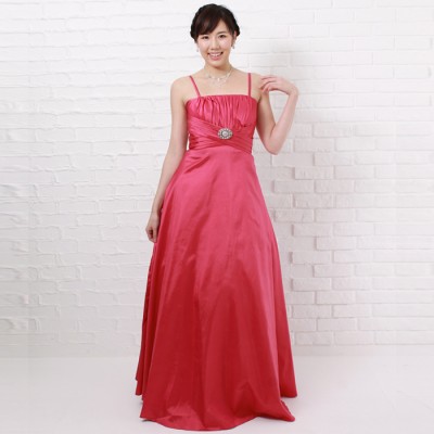 フーシャカラーシンプルタフタステージドレス
